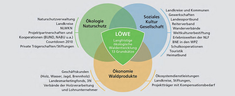 Die dort niedergelegten 13 Grundsätze zur ökologischen Waldentwicklung sind deutlich vom „Waldbau auf natürlicher Grundlage“ nach Oberförster Erdmann beeinflusst. Das Regierungsprogramm wurde auch Bestandteil des Gründungsgesetzes für die Anstalt Niedersächsische Landesforsten im Jahr 2005. Mehrere Überarbeitungen führten zu Erweiterungen und Präzisierungen. Zuletzt wurde 2020 der sog. „Niedersächsische Weg“ – das sind die Vereinbarungen zwischen den Naturschutzverbänden und der Landesregierung über eine Ökologisierung der Landwirtschaft aber auch der Forstwirtschaft – in das jetzt LÖWE+ genannte Konzept:
