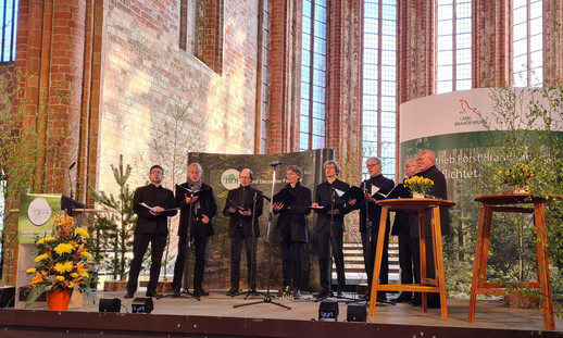 Die Auftaktveranstaltung zum Waldgebiet des Jahres 2023 – Choriner Wald – wurde bereichert durch das großartige Ensemble Vokalkolorit, ein Männerensemble, das mit umgedichteten und thematisch passenden Liedern begeisterte.