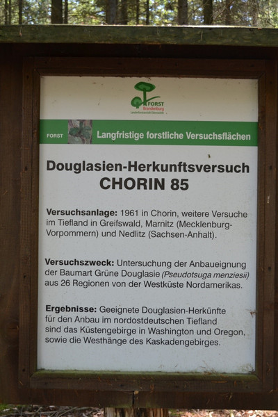 Aufgrund der räumlichen Nähe befinden sich zahlreiche traditionsreiche Versuchsflächen im Choriner Wald, z.B.: